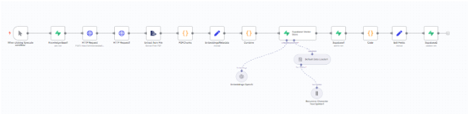 In addition, we configured the input via webhook, output to endpoint, and Supabase DB and implemented retries and error-handling within each node. Lastly for user testing we piloted the workflow using actual project UUIDs and document sets, reviewed the JSON output and file traceability with the client, and confirmed accuracy and engagement with the client’s downstream.