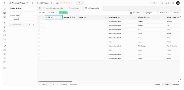 For this project, our client was a no-code automation consultancy helping mid-market businesses scale through online tools such as Make.com, n8n, and SaaS integrations. Their client, a large recruitment firm, wanted to sync their entire JobAdder database, including over 70,000 candidate records, into Supabase for use as a backend that could power multiple platforms, one of which included Bubble.